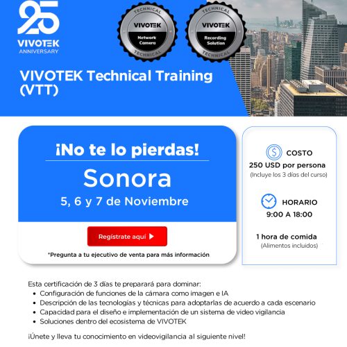 VIVOTEK | TECHNICAL TRAINING (VTT) (3 DÍAS) EL EVENTO SERÁ FUERA DE LA SUCURSAL – INICIA EL 5 DE NOVIEMBRE